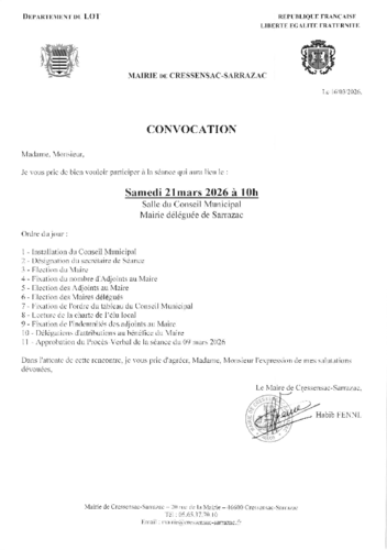 Depuis le 1er janvier 2019, la commune nouvelle de Cressensac-Sarrazac est une réalité. Après plusieurs mois de travail, les deux équipes municipales ont décidé de créer une commune qui regroupe aujourd’hui près de 1200 habitants... Lire la suite