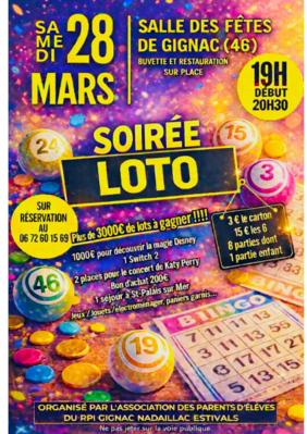 Soirée LOTO - Salle des fêtes de Gignac