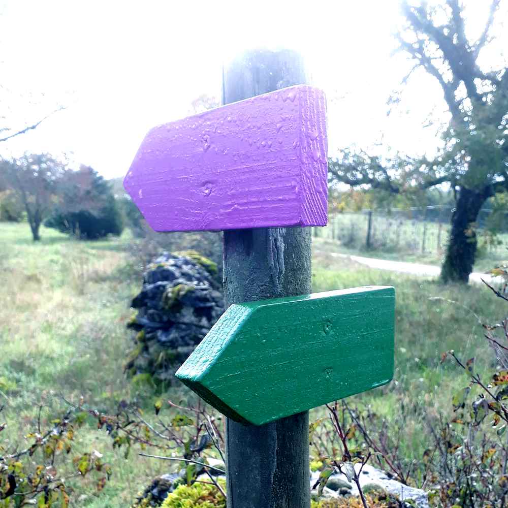 En effet, au préalable, il existait un balisage pour ces chemins numérotés 1, 2 et 3. Aujourd’hui ce sont trois couleurs (violette, bleue et verte) qui vont guider le randonneur sur notre territoire. De plus le balisage ancien s’était souvent détérioré au fil du temps. A noter que ce sont des élus de l’équipe municipale de Sarrazac entre 2008 et 2014 qui ont conçu et réalisé ces circuits pédestres.